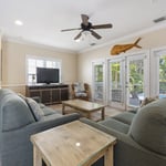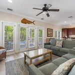 Pelican’s Nest is a stunning property with six bedrooms and five baths, perfect for large groups or families. This spacious home features a private pool and boat dockage, allowing you to relax and enjoy the Florida sunshine and surrounding waters. With newly-appointed interiors and beautiful island decor, Pelican’s Nest provides a comfortable and stylish retreat for your vacation.