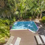 At each of the Sanctuary Villas, lush tropical foliage surrounds the backyard and swimming pool. The thick greenery makes for a secluded space for you to enjoy a private and peaceful time outside beneath the shade of the palms.